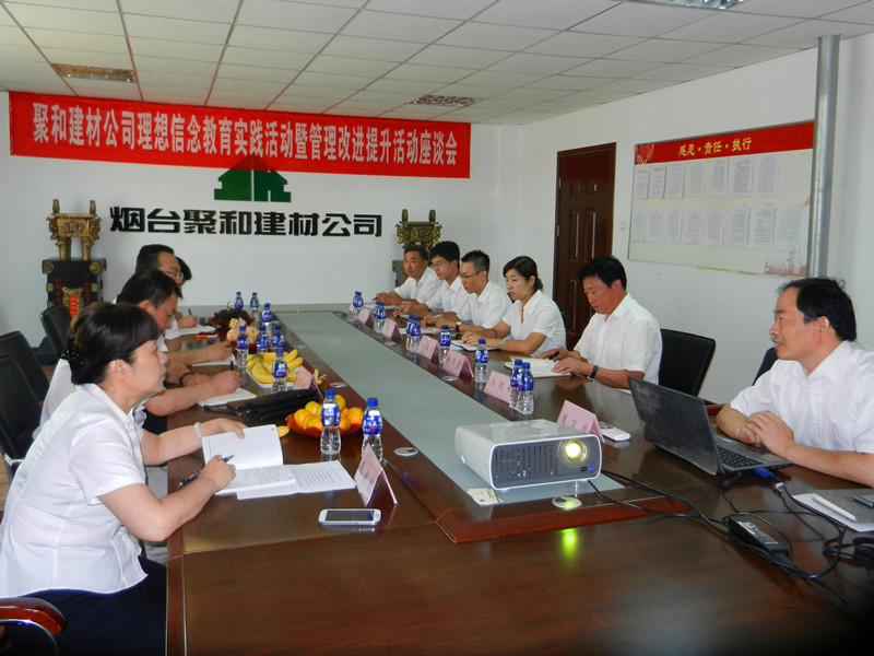 9月18日上午,集團(tuán)公司總會(huì)計(jì)師、理想信念教育實(shí)踐活動(dòng)暨管理改進(jìn)提升活動(dòng)領(lǐng)導(dǎo)小組副組長(zhǎng)陳巍巍,在財(cái)務(wù)部李潔部長(zhǎng)、審計(jì)部呂朝陽(yáng)部長(zhǎng)、內(nèi)部銀行李寧行長(zhǎng)的陪同下,一行四人到聚和建材公司駐地進(jìn)行了“理想信念教育實(shí)踐活動(dòng)暨管理改進(jìn)提升活動(dòng)”調(diào)研座談,聚和建材公司領(lǐng)導(dǎo)班子成員、各處室負(fù)責(zé)人參加了座談會(huì)。