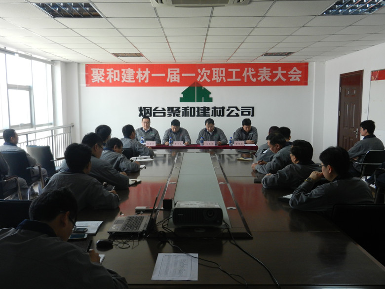 4月16日上午,聚和建材、東泰物流在公司駐地會議室召開一屆一次職工代表大會。公司領導班子、職工代表等共計25人參加了會議。大會由工會主席、總工程師張敬忠主持,集團工會副主席賀長波出席會議。