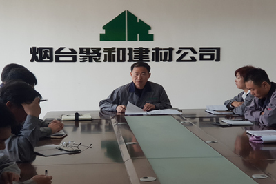 2018年10月11日上午,聚和建材在駐地二樓會議室召開了“唐總巡視慰問工地講話精神”宣貫會,公司領導班子及副處長以上人員參加了會議。